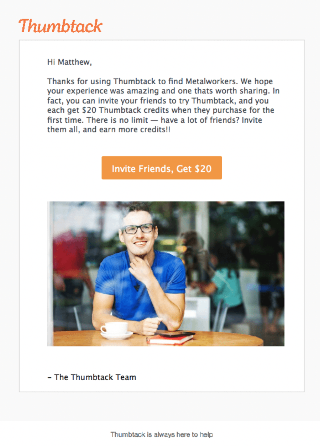 It contains a personal greeting element ("Hi Matthew") which dramatically improves customer experience and makes it more likely for the customer to read the email.